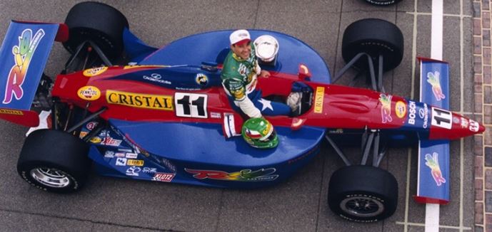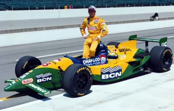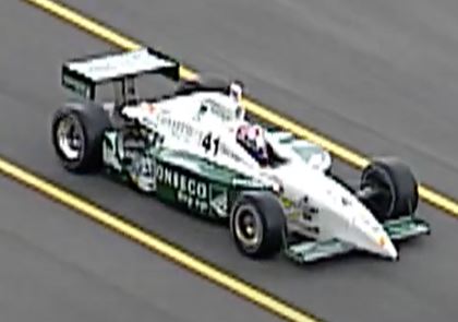 Another prominent green sponsor was Quaker State. The motor oil company sponsored the Porsche Indy Car team in 1988–1990, then King Racing (owned by Kenny Bernstein) in 1991–1992. During that stretch at the Indy 500, not once was a green Quaker State-sponsored car running at the finish, much less notching a victory. Roberto Guerrero triumphantly won the pole position for the 1992 race, but on race day crashed out in humbling fashion on the parade lap. Due to cold temperatures, Guerrero lost control and hit the inside wall – in nearly the same spot that Tom Sneva did six years earlier. Guerrero placed 33rd (last) that day, never even making it to the green flag. Incidentally, Guerrero drove the same exact chassis to another 33rd place finish two years later in the 1994 race. This time the car was painted green and black, carrying the colors of sponsor Interstate Batteries.