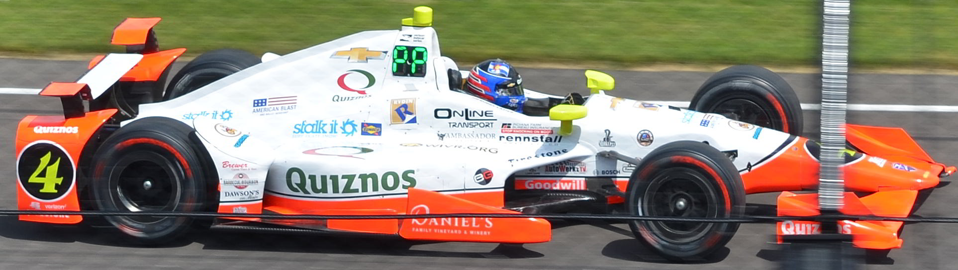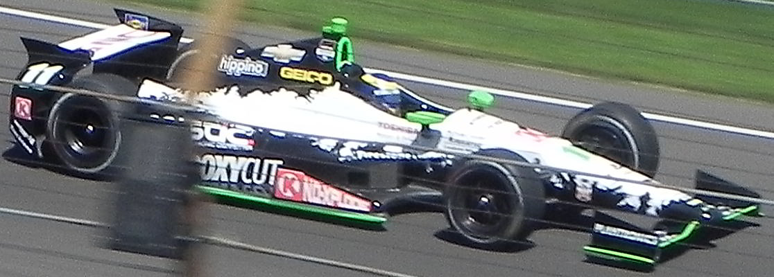 The #4 car of Dalton Kellett (A.J. Foyt Racing) had black and white, with aqua or turquoise (but not close enough to be interpreted as a shade of green). Kellett started 30th and finished one lap down in 23rd.