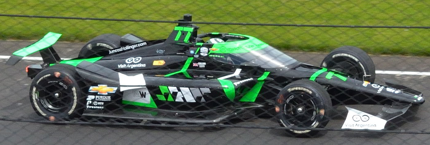There were no solid green cars in the 2025 race. Jack Harvey’s machine was green and black, the most green of any of the entries. The Prema Racing cars of Robert Shwartzman and Callum Illot were red-white-green, the colors of the Italian flag. Shwartzman surprisingly won the pole position, the first rookie pole winner since 1983. He led 8 laps but dropped out, however, after contact in the pit area. His teammate Ilot initially finished 12th, but was dropped to 33rd after failing post-race technical inspection.